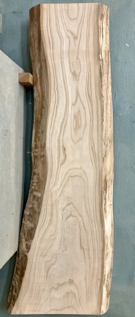 ■クスノキの両ミミ付き看板材です。木目模様がユニークな1枚です。下画像のように縦使いもできます。