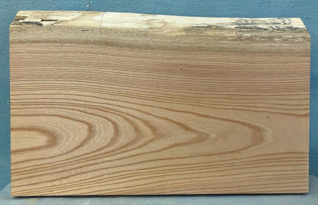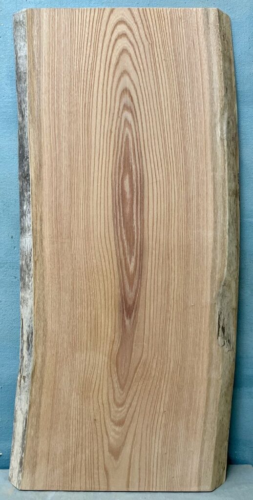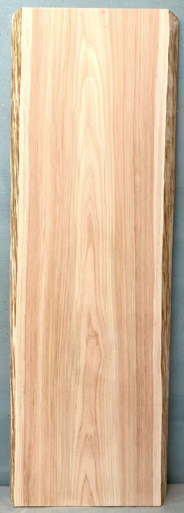 ■色合いの変化や木目模様がきれいなケヤキの3辺カット素材です。上辺のみミミ(表皮)付きである分、少しお値段を下げています。